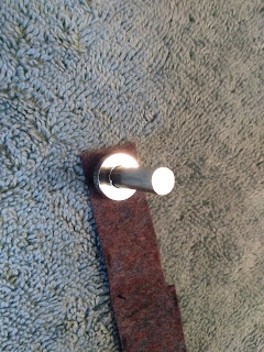 Double sided rivets are relatively simple to install, especially if you have crimping tool like a Crop-o-dile. First you site the locations by using a small holepunch, then you feed the two sides of the rivet through the hole. I carefully installed the rivets to attached the belt straps to the holster, being sure not to interfere with the stitching. It has the benefit of also piercing and holding the upper plastic insert in place.
